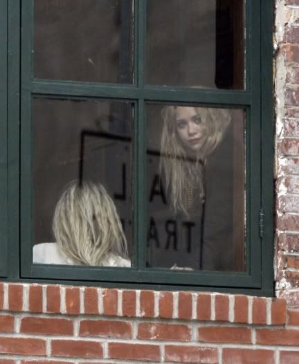 This photo cracked me up. It looks like a promo to the spookiest horror flick, but, it's just the Olsens getting ready for a photo shoot. They need to invest some of thier millions in combs.